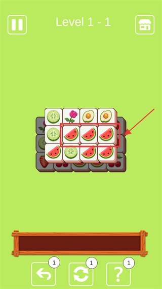 在关卡里找出图案一样的方块,像【西瓜】这类,只要点击三个相同的方块就能让它们消除,从而推进游戏的进程。
