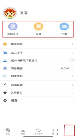 点击底部导航栏的“我”图标,进入个人中心页面,就能查看主题关注、收藏、评论等功能模块的相关内容。