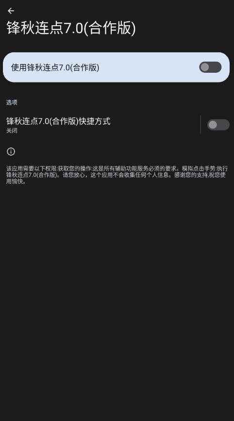 锋秋连点7.0是一款功能强大又易于操作的手机连点器工具,具备多种连点模式和自定义录制点击的功能,用户能够依据游戏、办公或者日常使用等不同场景来灵活进行设置。该软件界面清晰直观,还提供了详细的操作指南,就算是新手也可以迅速上手。不管是自动刷图、抢购秒杀,还是处理重复性的操作任务,都能轻松让双手得到解放,显著提高效率。有需求的用户,欢迎在本站体验这款高效便捷的智能辅助工具。