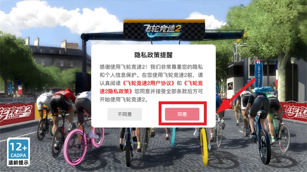 在本站安装并打开飞轮竞速2,先同意隐私政策提醒