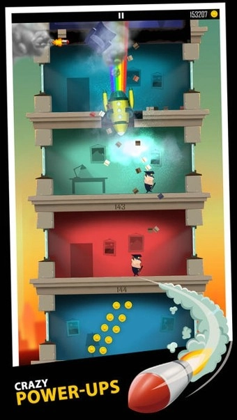 经过若干楼层后,会遇到银行的保险系统,老爸将其破坏后,就能获得大量金币。