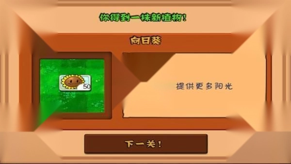 5、成功通过关卡之后,将会获得新植物,以此进入下一关;
