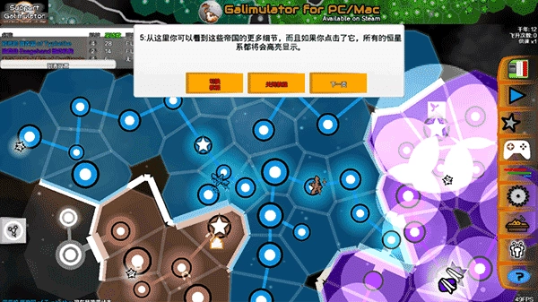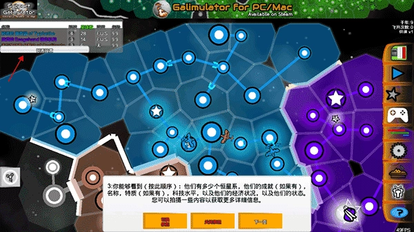 2、正如你所看到的,这个面板后面的星系里到处都是国家,每个国家都有一个属于自己的颜色,它们抢夺着恒星,通常都处于相互争斗的状态。在左上方可以看到银河系中最强大的几个帝国的列表。