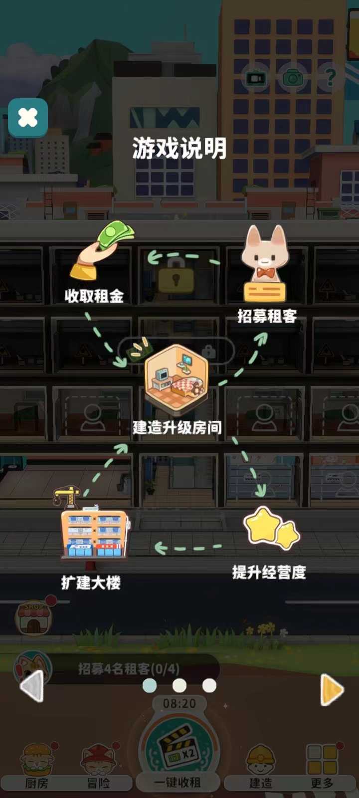 作为代理房东,你的主要工作就是收租!收租!收租!你需要规划扩建大楼,租出更多的公寓与商铺。