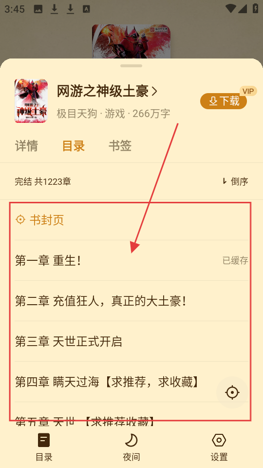 在目录列表里,找到你想阅读的章节,比如【第三章天世正式开启】,点击这个章节,就能进入章节阅读页面了。