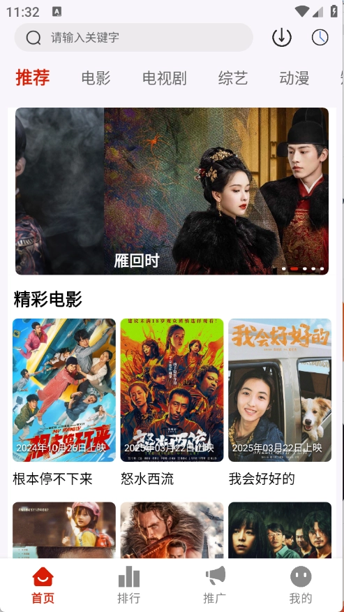 进入首页页面后,顶部栏里有不少影视资源,涵盖电影、电视剧和综艺等类别。
