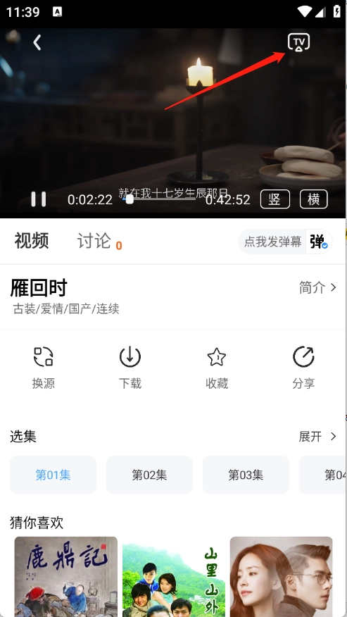 找到并打开你想看的影片就能直接播放,还能进行收藏、投屏等操作。