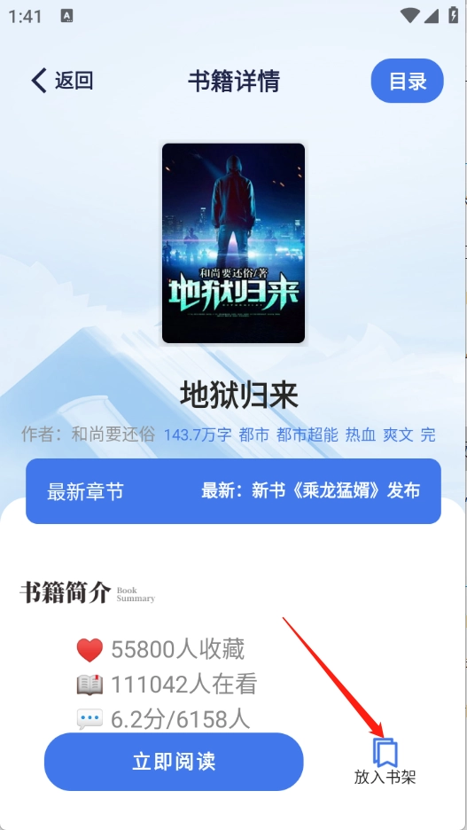 用户点开想看的小说进入详情页,点击“立即阅读”。