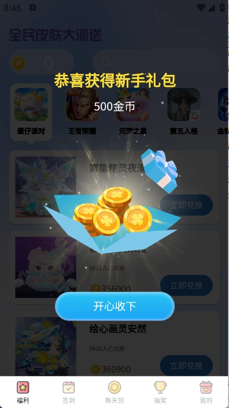 所有游戏皮肤均可免费领取,涵盖王者荣耀、蛋仔派对、和平精英等各类游戏,且所有皮肤均为永久有效,只需完成任务获取对应金币即可兑换。