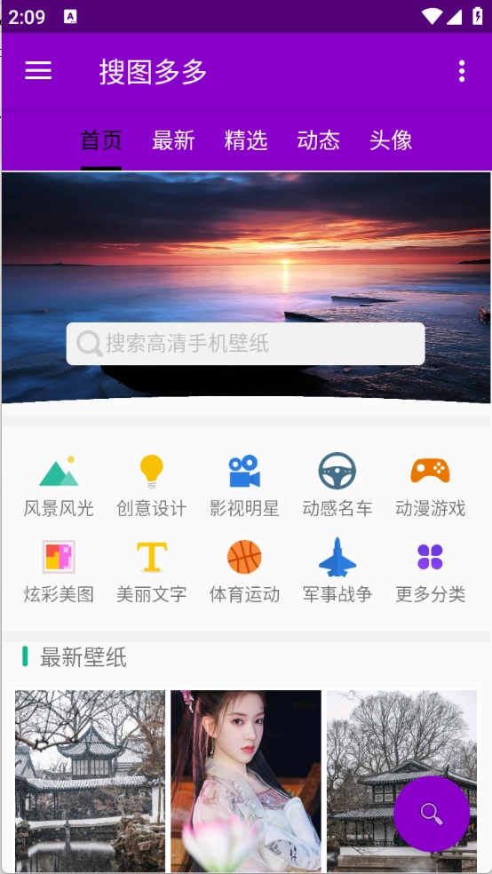 搜图多多汇聚海量壁纸与头像资源,分类细致全面,包含自然风光、美食、动漫等多样品类。这里的壁纸和头像均为当下热门款式,能让你的手机壁纸展现独特风格;平台还会持续更新壁纸头像库,助你的手机桌面时刻保持新鲜感。