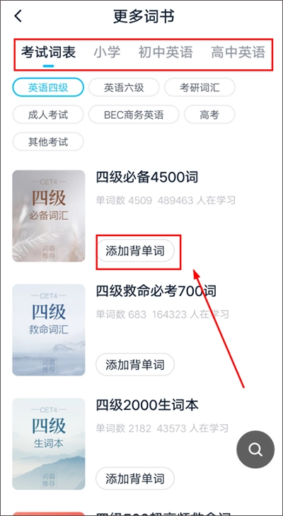 在“更多词书”页面中,可依据自身需求挑选计划背诵的单词数量。