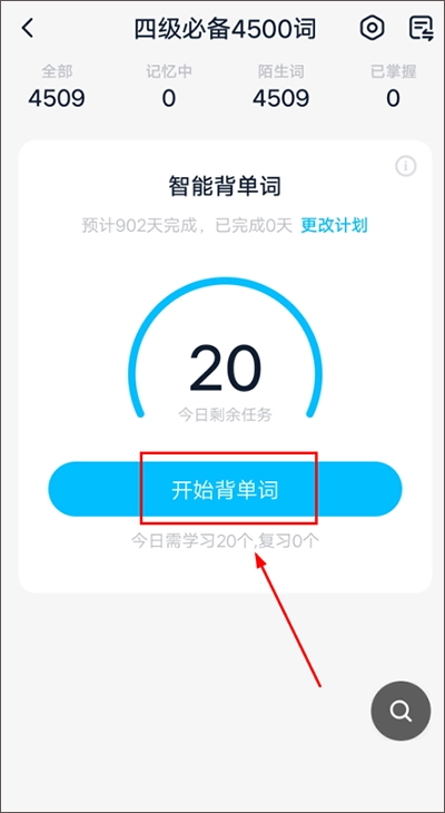 接着点击“开始背单词”即可开启自己的每日学习计划