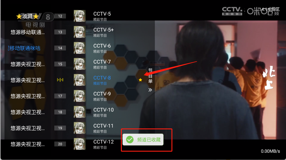 可以点击左上角的“收藏”查看收藏的频道。