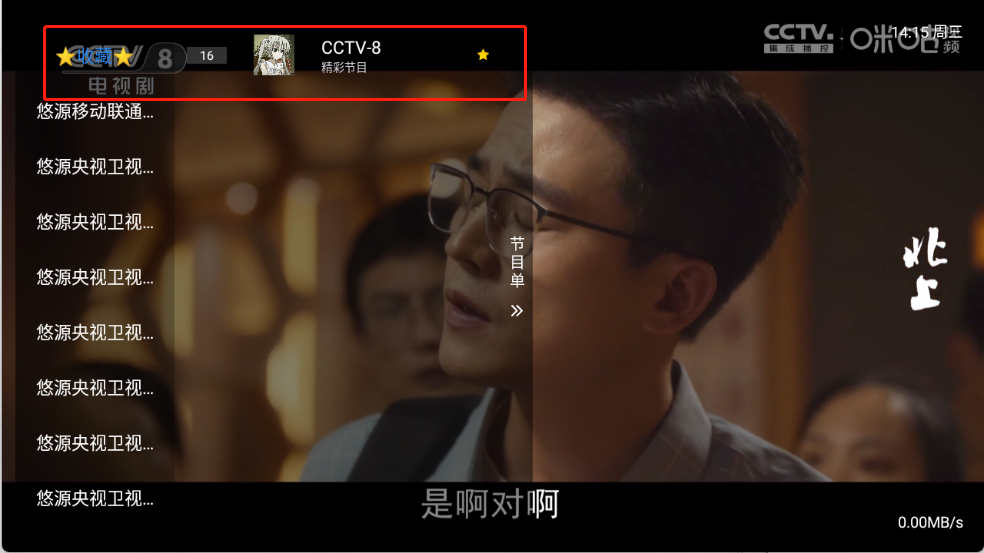 用户直接点击想看的频道就可以进行播放了。