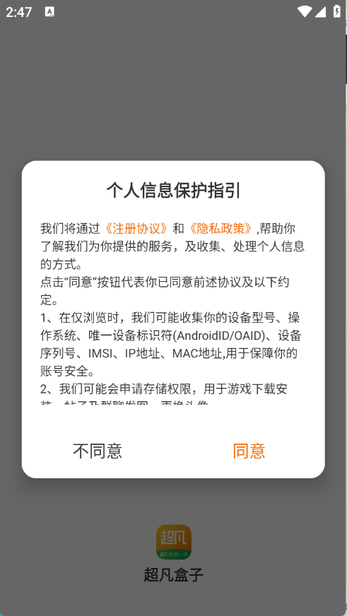 首先,在3G游戏网的超凡盒子里,查看并同意隐私政策和用户协议。