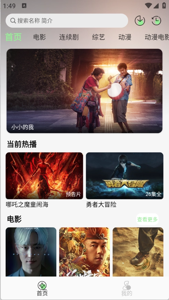在首页页面,用户能够浏览到丰富多样的影视资源,涵盖电影、综艺和动漫等不同类型。