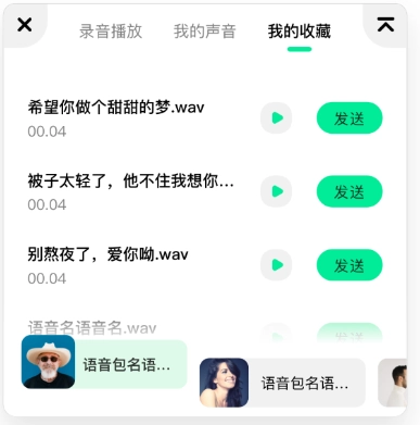 选择语音包或音录制好的声音,点击右边的分享按钮