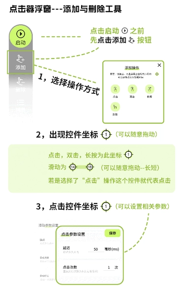 自动精灵是一款免费的手机连点工具,能适配刷视频、重复操作、游戏等多种场景,全程免费使用,无需额外权限设置,还支持悬浮窗功能,可自定义点击频率、时长和次数,操作简单易上手。
