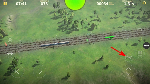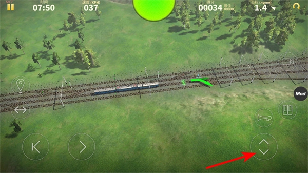点击视角调整按钮能够切换观察视角,可依据轨道布局与行驶需求进行选择,有助于更精准地把控火车的行驶状态。