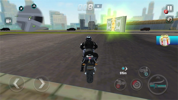 驾驶你的摩托驰骋在道路上,收集各类物品就能获取奖励,而秀出不同的特技动作同样也能赢得奖励。