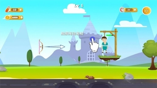 1. 基础玩法为:对弓箭射击方向进行调整,精准地射断束缚朋友的绳索,从而成功解救被困的朋友,达成关卡目标。