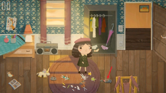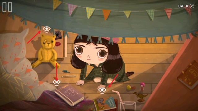 我们能够在房间里查看物品,之后查看床,紧接着就会进入小女孩的秘密基地。