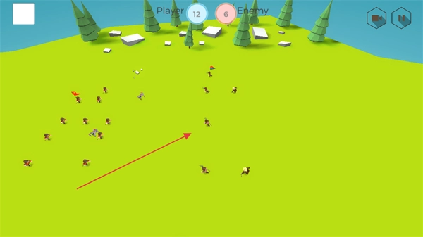 在战场上指挥己方单位(比如农民)进行移动,借助数量上的优势对敌方单位形成包围,进而发动进攻。