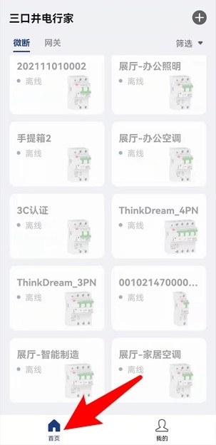 首页呈现所有已接入的设备,用户能够迅速查看每台断路器的名称、安装位置以及实时状态信息。