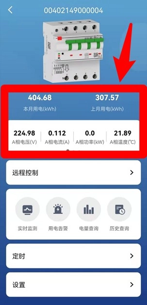 设备详情页会呈现当前与上月的电量对比情况,同时还会汇总电压、电流、温度等关键的运行指标。