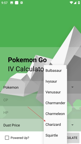 在列表里挑选【要查询的宝可梦】,把它设定为当前进行计算的宝可梦。