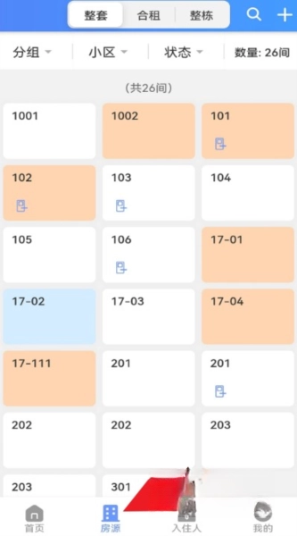 点击“房源”栏目,就能查看各个房间的详细信息,像房号、状态以及配套设施等都包含在内。