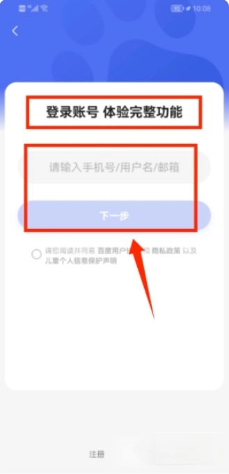 打开百度优选应用,在同意服务协议和隐私政策后,进入登录页面。