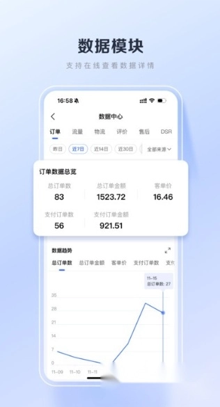 数据反馈实现实时化:实时同步店铺的各项经营数据,涵盖销量、订单量、用户反馈等关键信息,助力商家快速把控经营动态,以便及时调整运营策略。