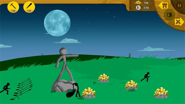 游戏里的兵种类型十分丰富,像矿工、剑士、弓箭手、矛士、法师、巨人这类,各自都有着不一样的用途。
