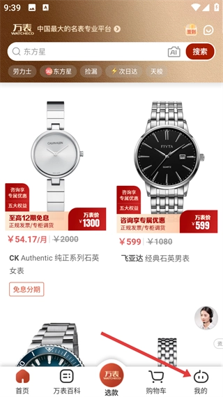 打开【万表名表珠宝】,点击右下方的【我的】进入个人主页哦。