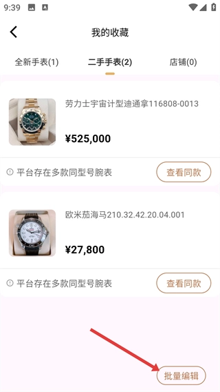 点击【全选】按钮后,接着点击【删除】按钮,就可以把收藏的手表全部清空啦。