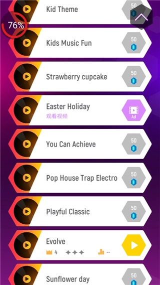 7、当然啦,若是玩家们想要挑战其他歌曲,那你只需下滑就可以进行挑战啦;