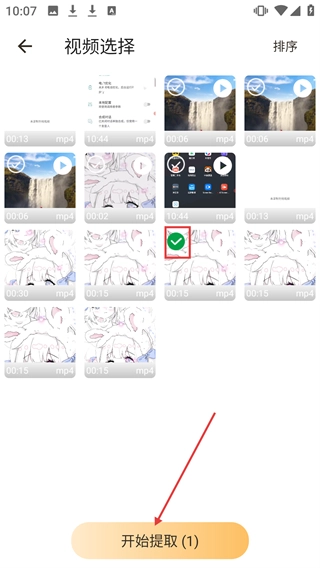 在视频选择界面,挑选好要提取音频的视频后,点击【开始提取(1)】按钮,即可进入音频提取流程。