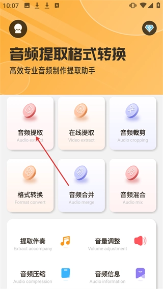 在应用的主界面中,找到并点击【音频提取】这个功能模块,即可进入音频提取的操作流程。