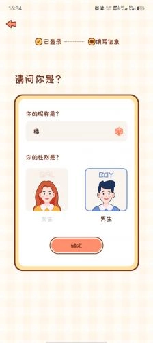3、取一个昵称,然后选取性别;