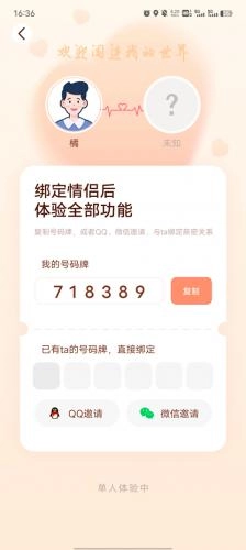 5、用户可复制自己的号码牌QQ、微信邀请、或者直接填写情侣的号码牌;