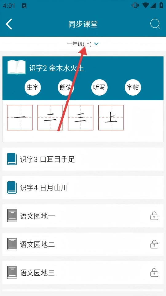 在年级列表里,挑选【四年级(上)】这一选项,就能进入四年级(上)的同步课堂页面了。