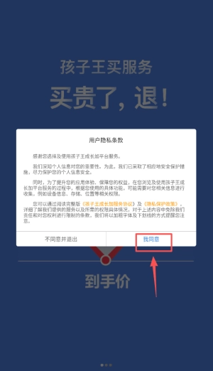 首次启动应用,请在隐私条款弹窗点击我同意选项。