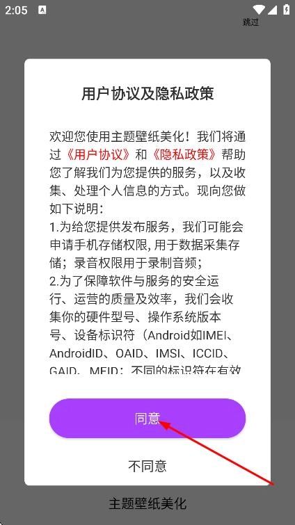 在用户协议与隐私政策的弹窗里,点击同意按钮,即可进入应用。