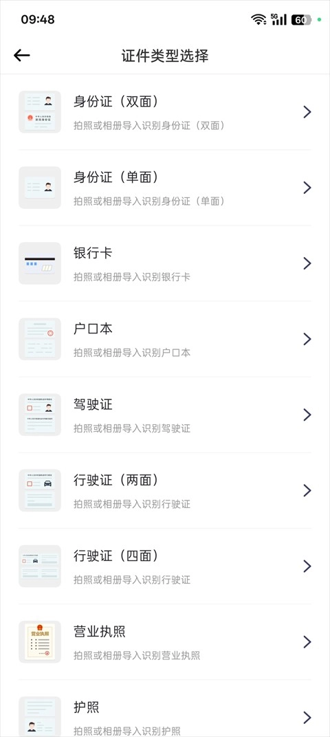 支持证件扫描功能,自动为用户生成电子复印件。