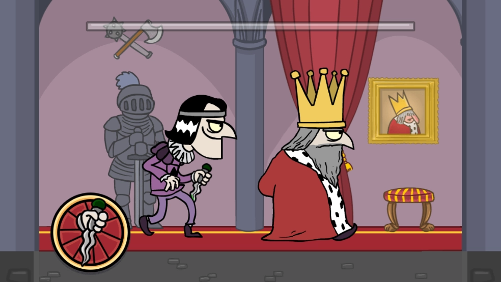 我要当国王,也叫刺杀国王,是一款充满搞笑幽默元素的休闲策略游戏。这款游戏的手机版设定十分有趣,玩家初始身份是刺客。当国王即将回头时会有明显的前兆,像转头的动作、头部轻微晃动等,这时玩家得马上松手停止行动,要是继续蓄力就会被当场逮住;而当国王低头往前走、没有任何动作的时候,就是刺杀他的好时机。