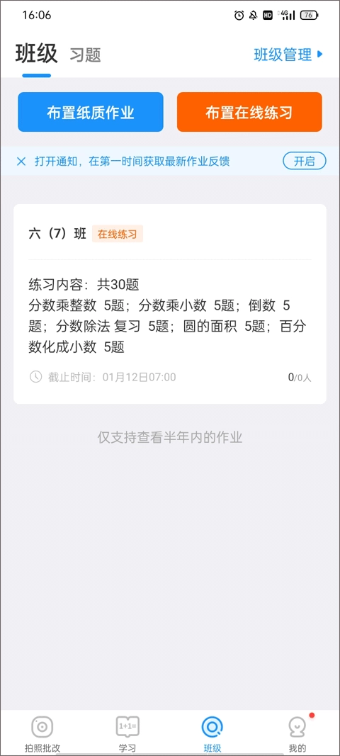 设置好练习后就可以通知学生或家长了,需要注意的是:仅支持查看半年内的作业。