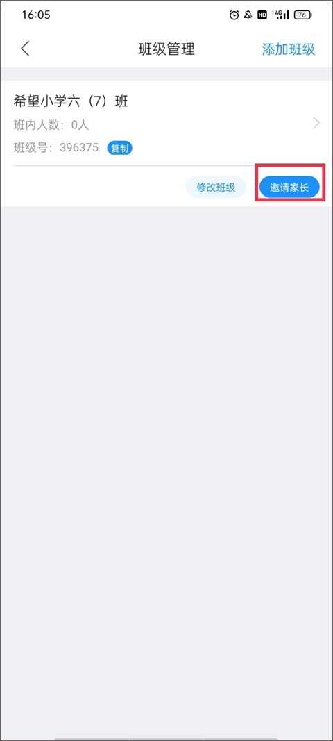 在班级管理页面,你能看到不少已经添加好的班级信息,点击页面下方的“邀请家长”按钮就可以了。