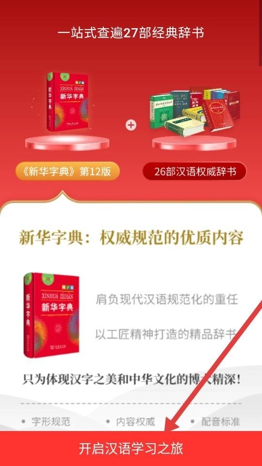 进入该界面后,按照箭头的提示,把目光移至下方,点击“开始学习之旅”按钮,即可跳转至下一个界面。