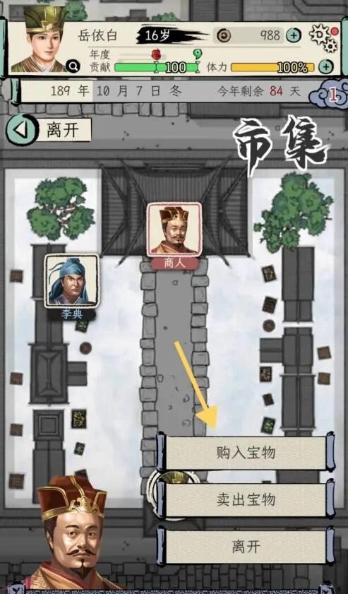 :游戏模拟了三国时期的社会生活和人物关系,玩家可以深入体验三国时期的风土人情,体验玩法感觉很有趣。在市集建筑中,选择“商人”人物进行对话。